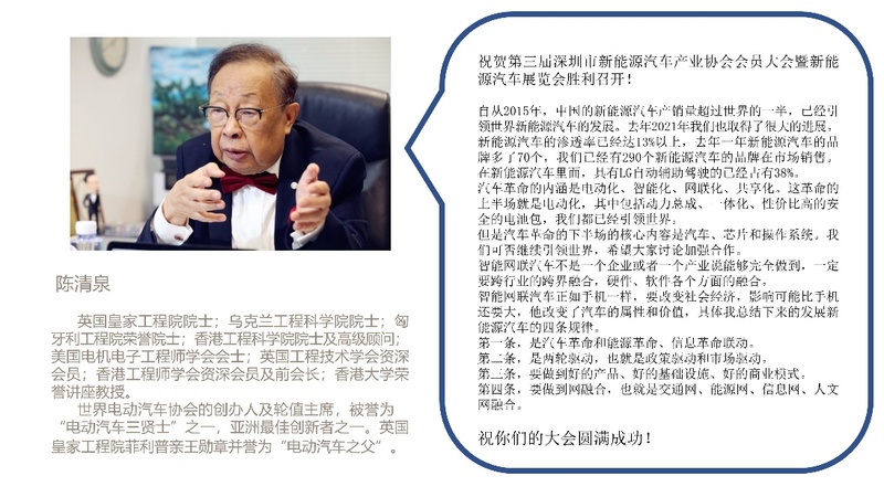 被譽為“電動車三賢士之一”“亞洲電動車之父”的陳清泉院士,受疫情防控的影響未能來到現場,但是通過線上文字的方式表達祝賀。此外,陳院士還分享了對我國新能源汽車產業的現狀以及未來發展的看法。這場“線上”分享贏得了全場參會嘉賓的熱烈掌聲。
